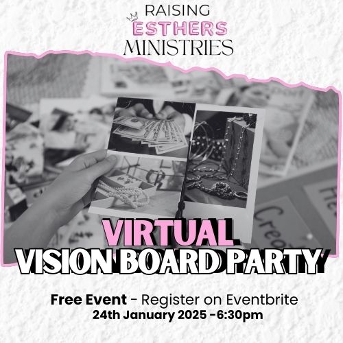 Join Raising Esther’s Ministries for a powerful, faith-filled Virtual Vision Board Party designed to help you to get closer to God. This year, we’re stepping into vision, not just with goals—but with identity.